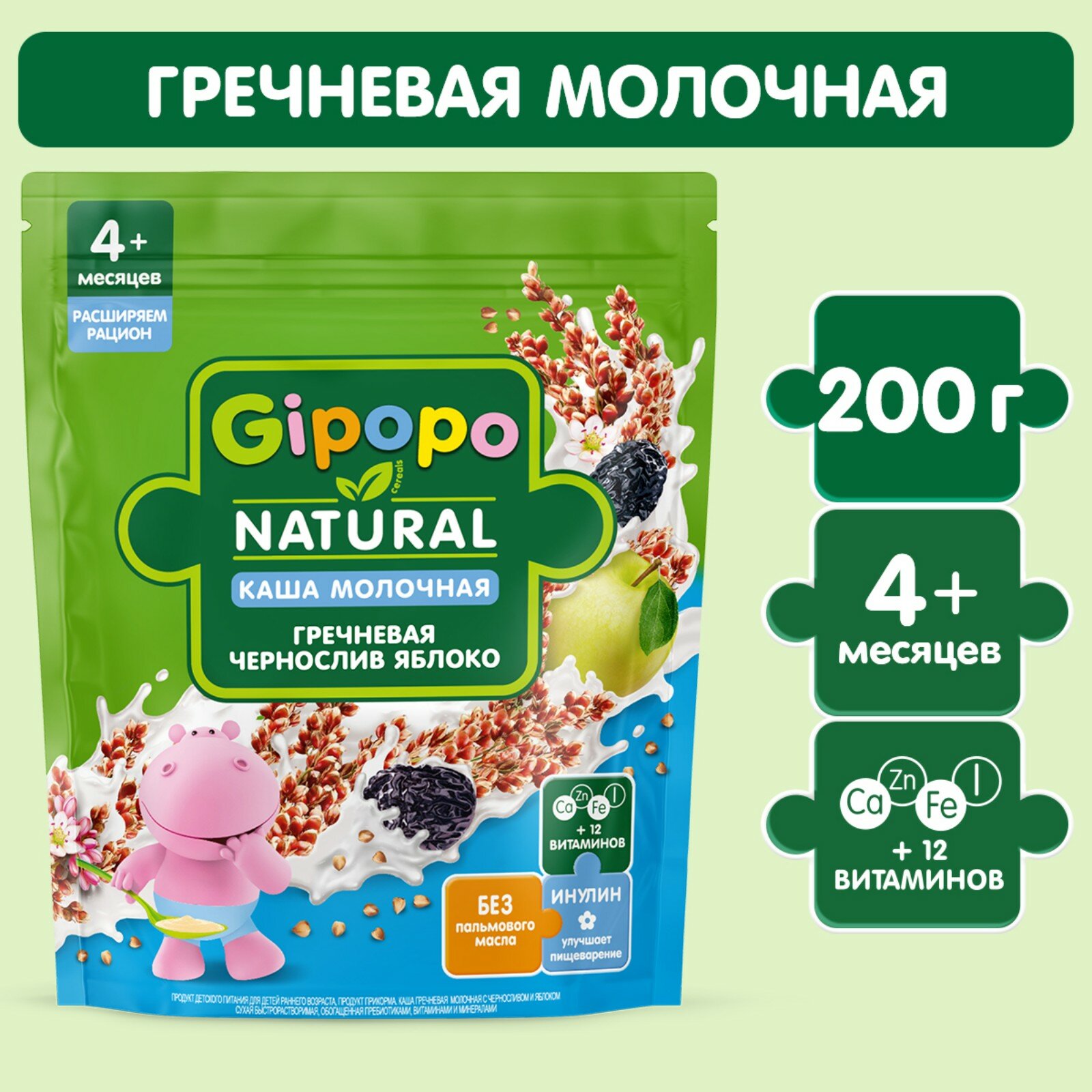 Купить Gipopo - (пауч) каша молочная, гречневая чернослив, яблоко, 4 мес, 200