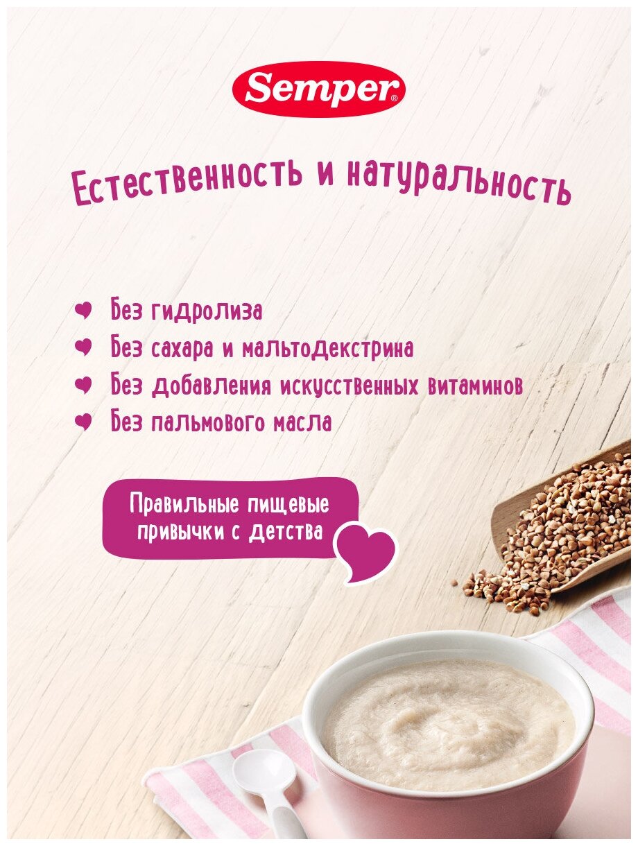 Каша безмолочная Semper Гречневая без добавления сахара детская, с 4 месяцев, 180 г интересное: