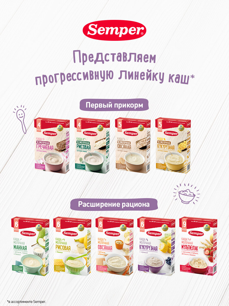 Каша молочная Semper Гречневая с черносливом и яблоком без добавления сахара детская, с 5 месяцев, 180 г интересное: