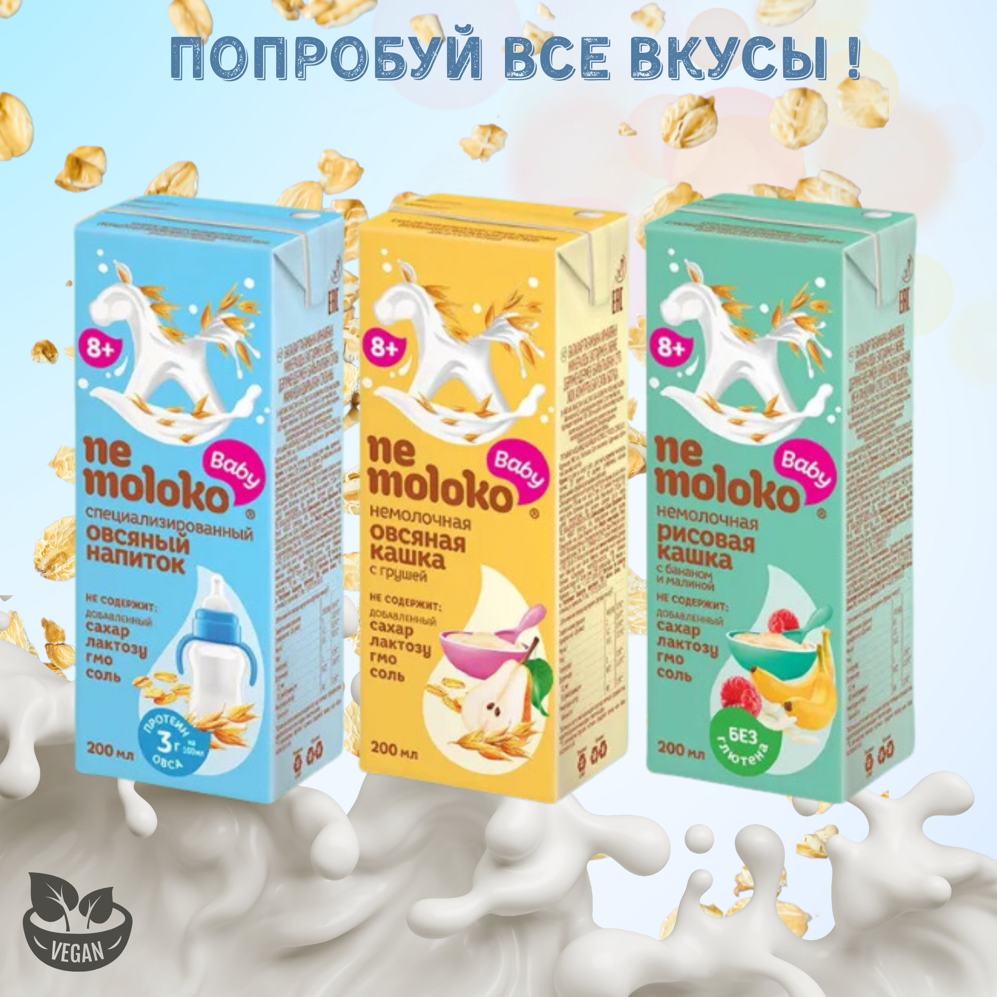 Каша жидкая овсяная безмолочная с 8 мес. Nemoloko с грушей, 14шт*200мл. интересное: