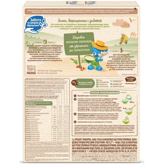 Каша безмолочная Nestle гречневая с 4 месяцев с пробиотиком BL 200 г интересное: