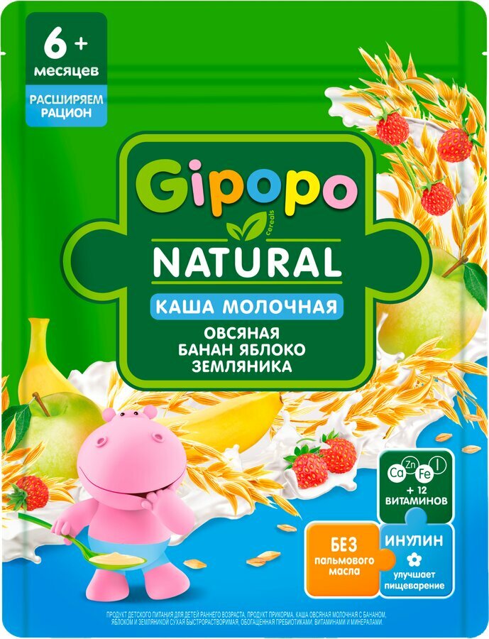 Д/п каша GIPOPO овсяная мол с бананом сухая. (Россия) 200 г