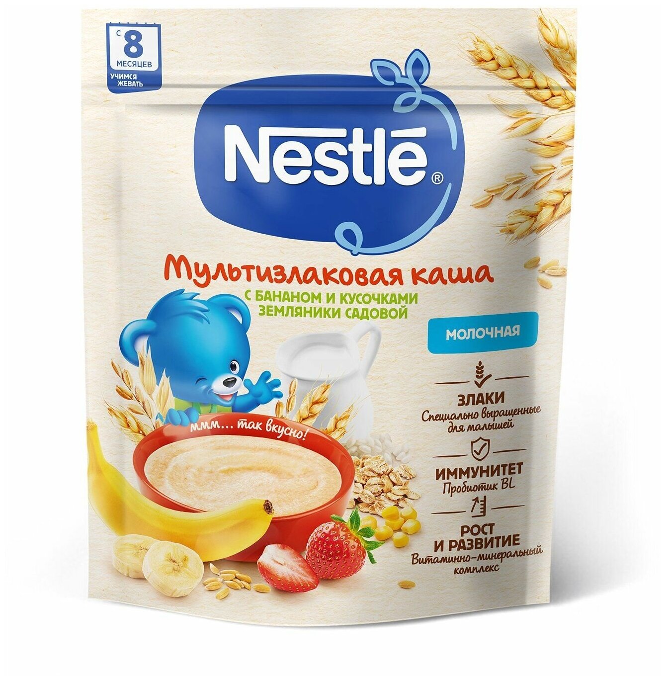 Купить Каша молочная Nestle мультизлаковая банан-земляника c 8 месяцев 200 г 2 шт