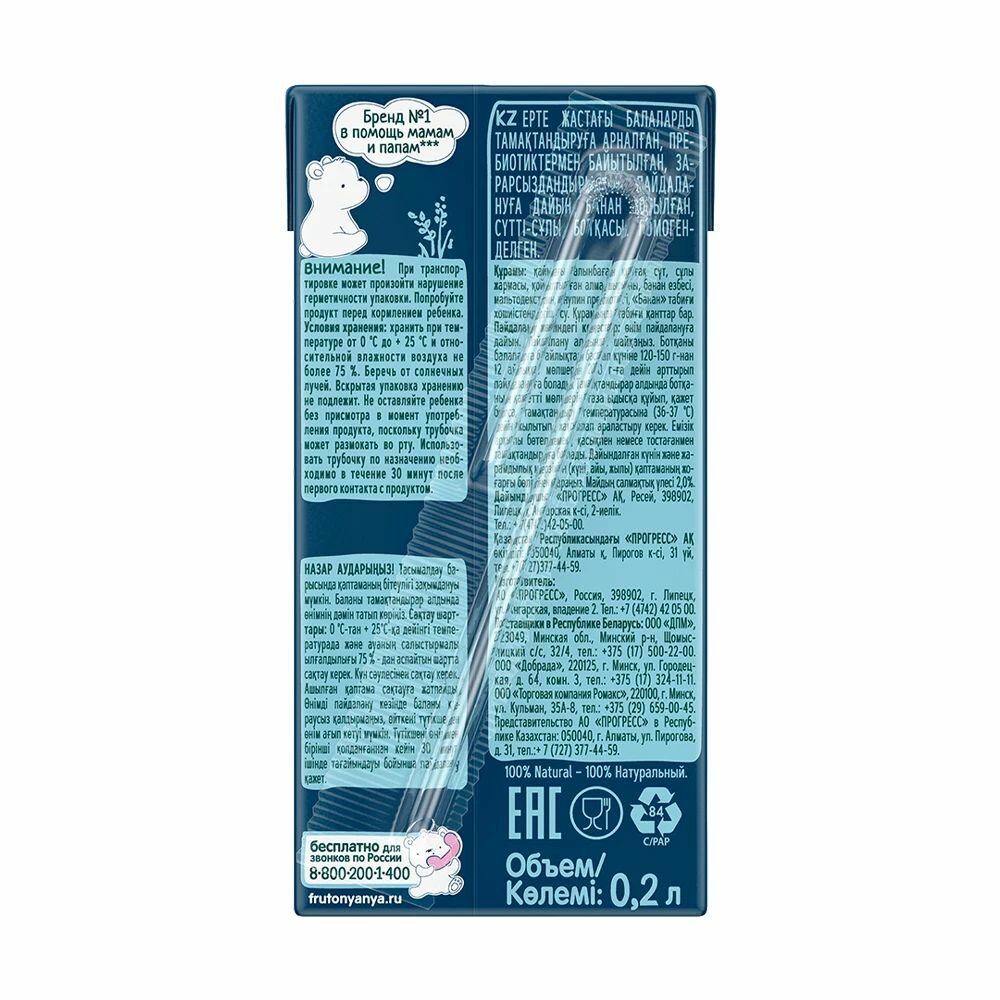 Каша ФрутоНяня молочная овсяная с бананом 0,2 л с 6 месяцев, 6 шт интересное: