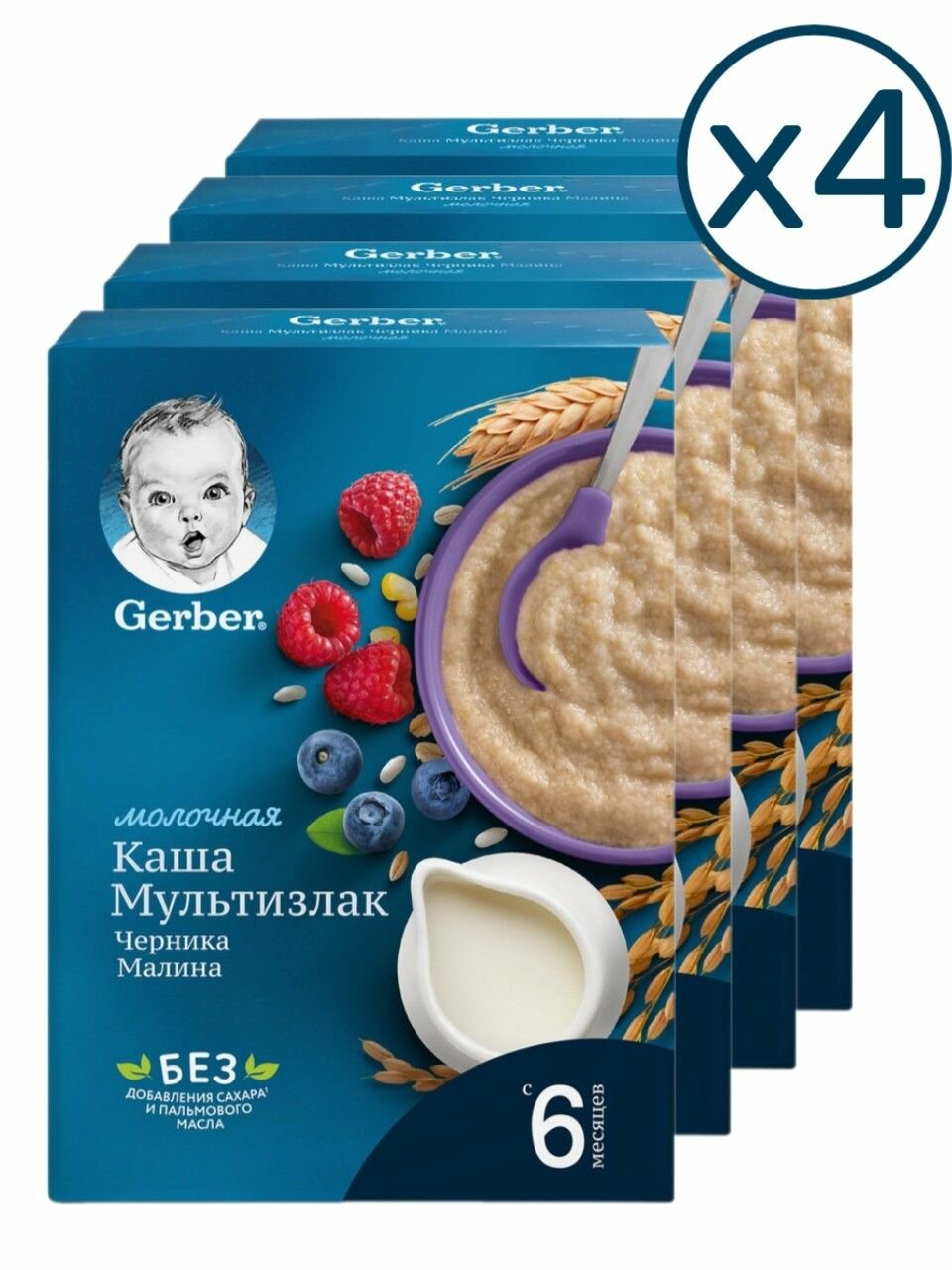 Купить Каша молочная Gerber мультизлаковая с черникой и малиной с 6 месяцев 180 г 4 шт