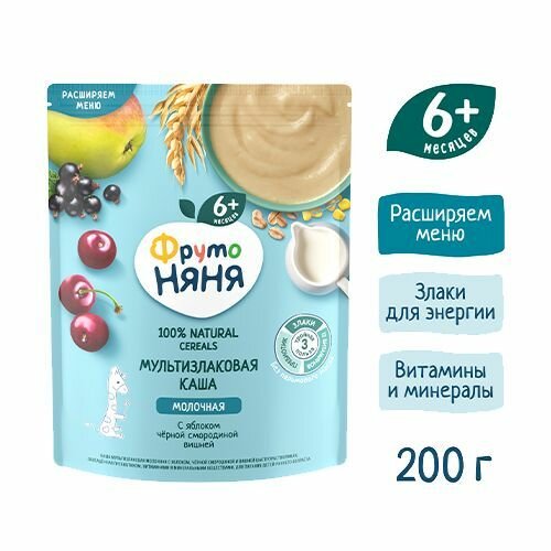 Каша"ФрутоНяня" молочная мультизлаковая с яблоком, смородиной и вишней с 6 месяцев 200 г 4 шт интересное: