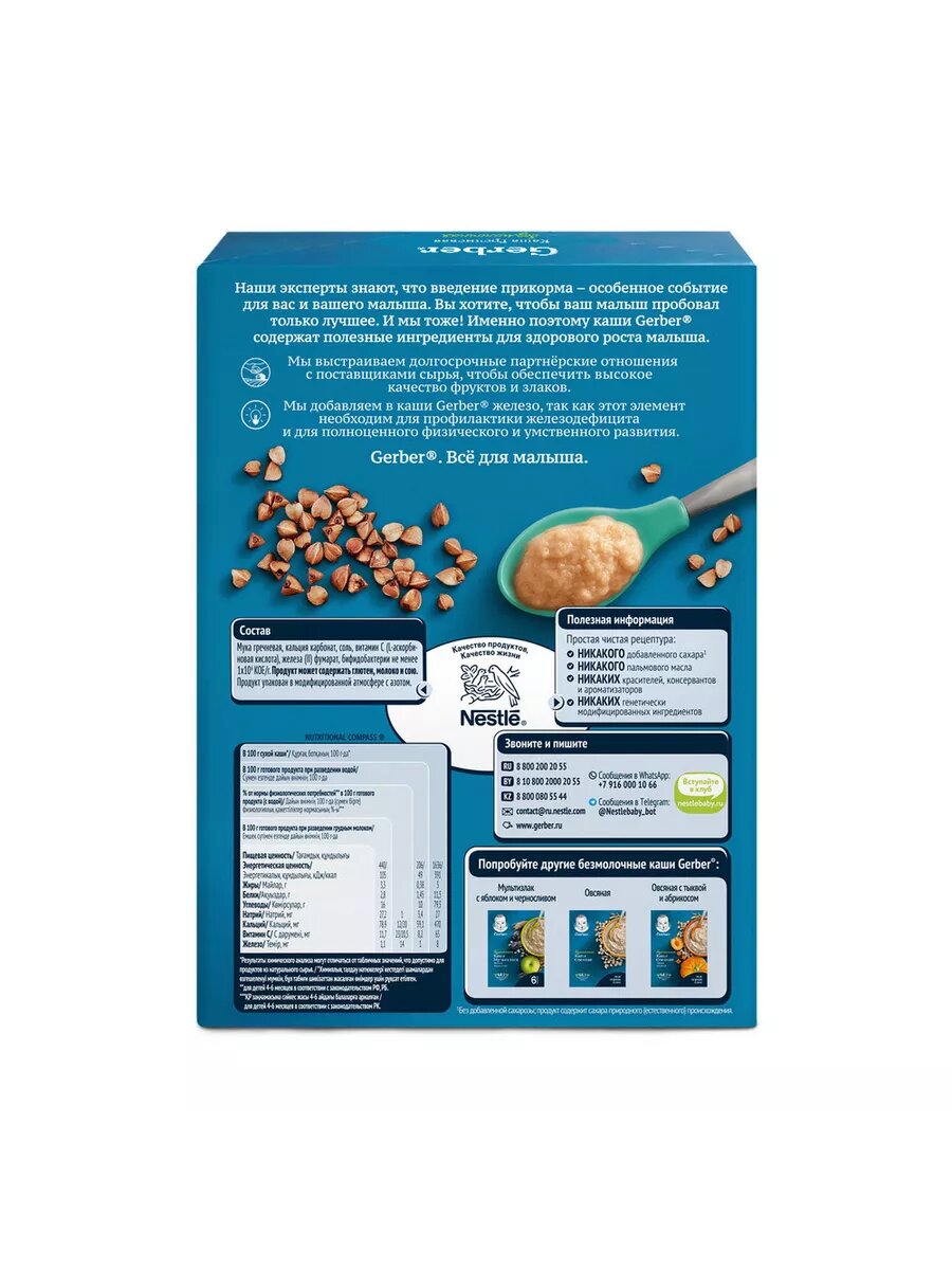 Каша безмолочная Gerber гречневая с 4 месяцев 180г интересное: