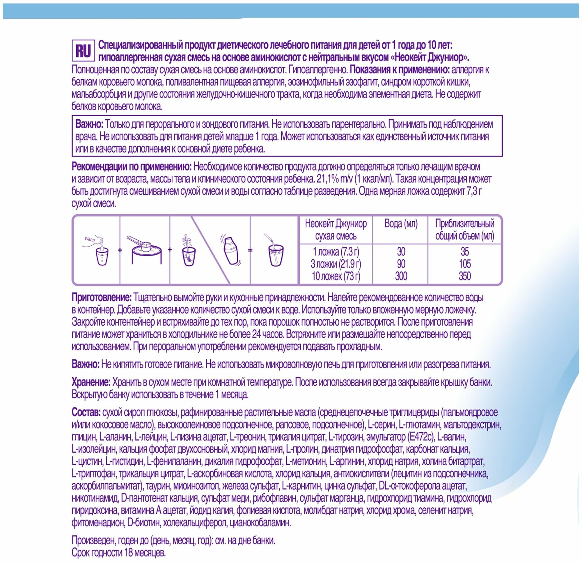 Купить Неокейт Джуниор Neocate Junior детская смесь гипоаллергенная, безлактозы с аминокислотами Nutricia