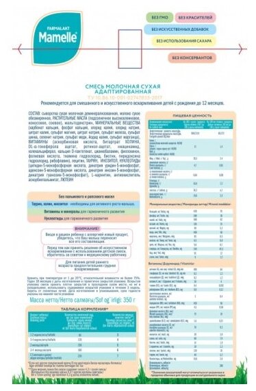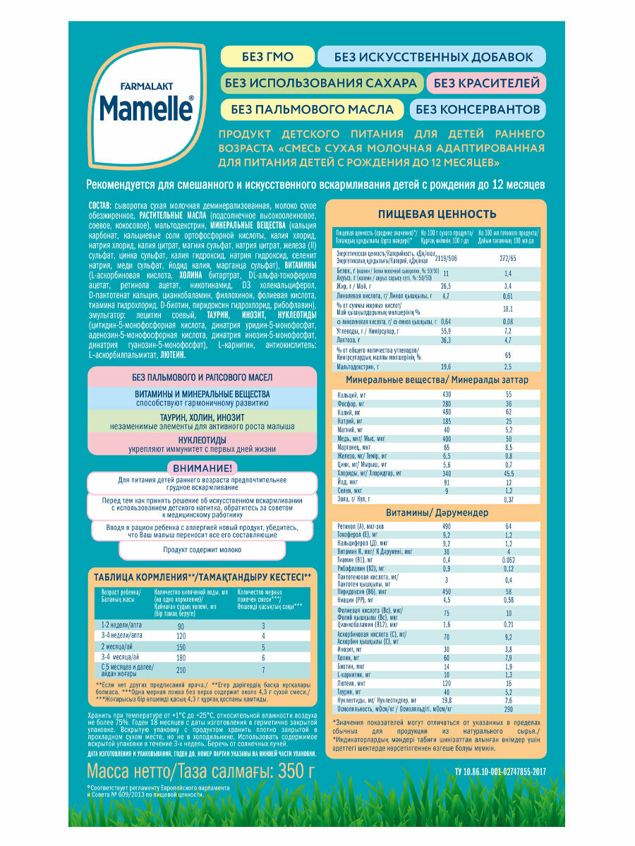 Смесь детская молочная Mamelle с 0 до 12 месяцев, 350 гр, 12 упак интересное:
