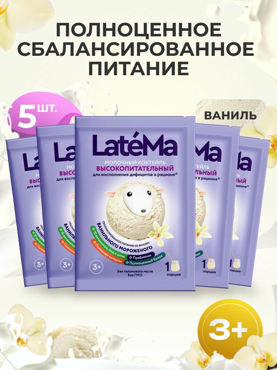 Купить LateMa (Латема) Детская молочная смесь для приготовления коктейля со вкусом ванильного мороженого 5 порций