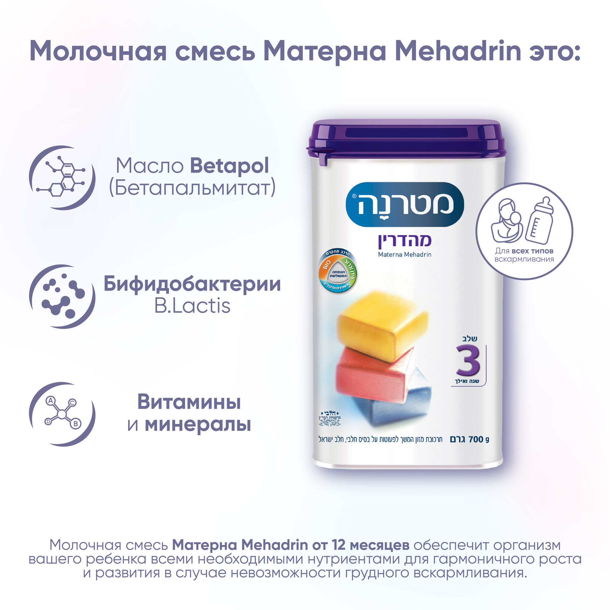 Купить Materna Молочная смесь Матерна Mehadrin (Меадрин), от 12 месяцев, 700 г.