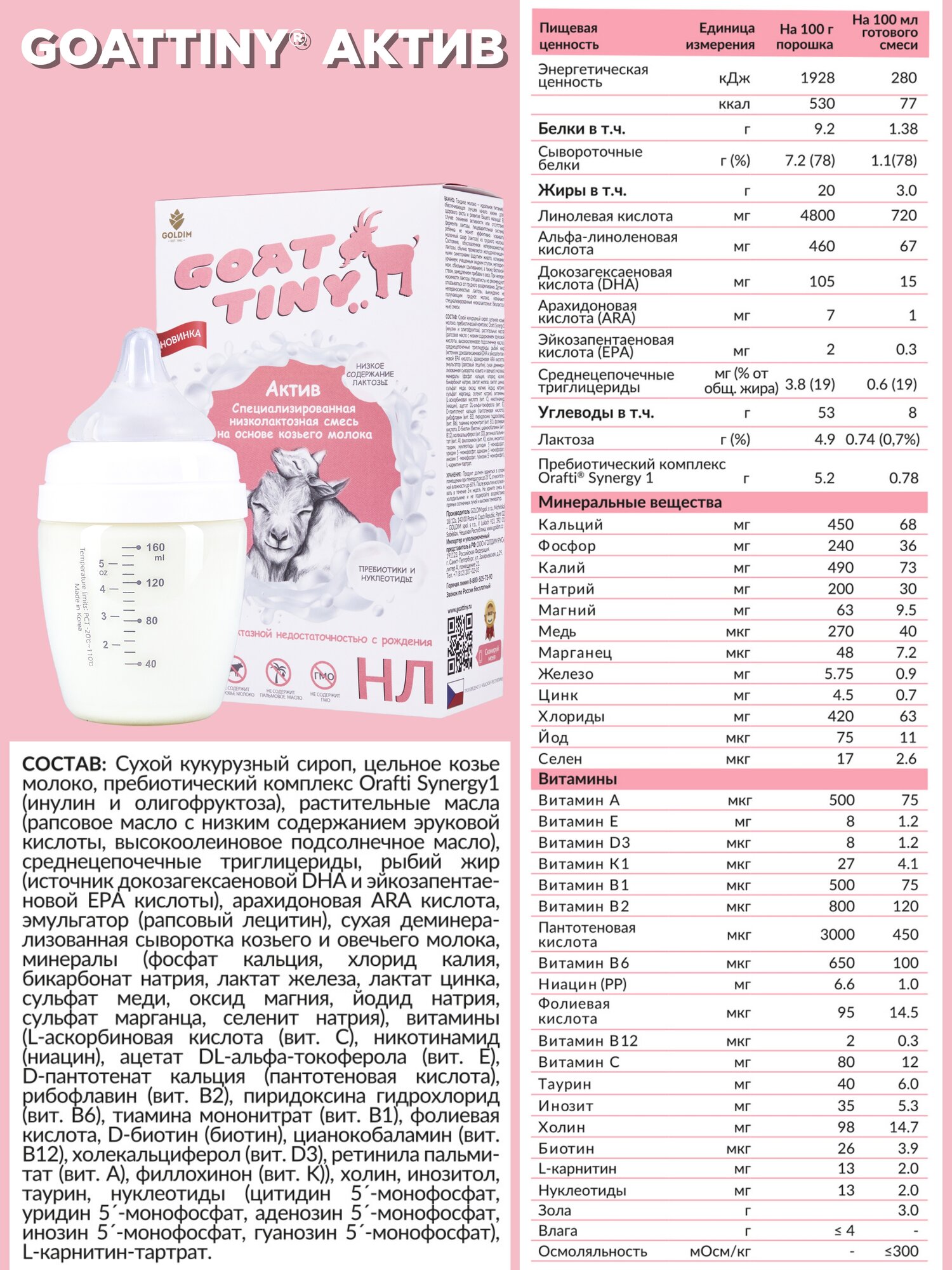 Низколактозная смесь GOATTINY АКТИВ на основе козьего молока для детей с лактазной недостаточностью, 350 г. интересное: