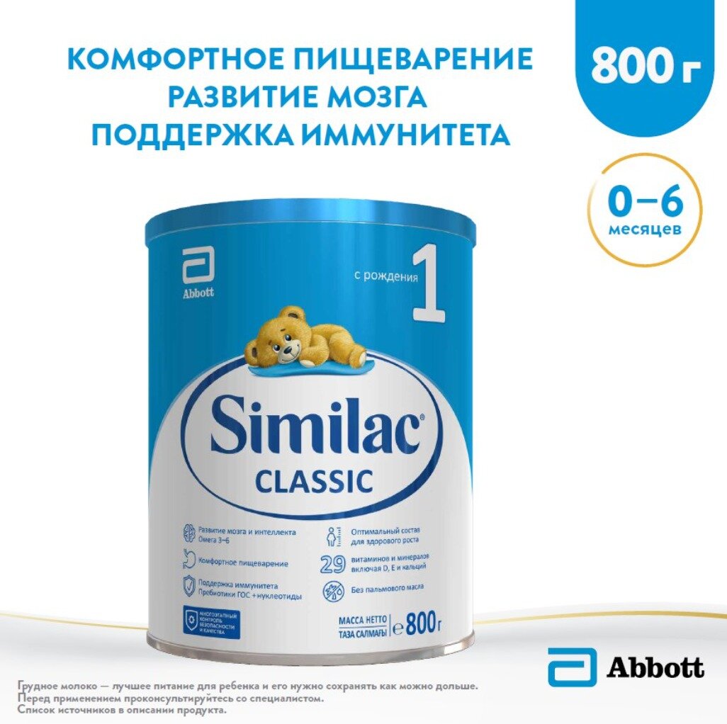 Смесь Similac (Abbott) Классик 1, с рождения, 800 г интересное: