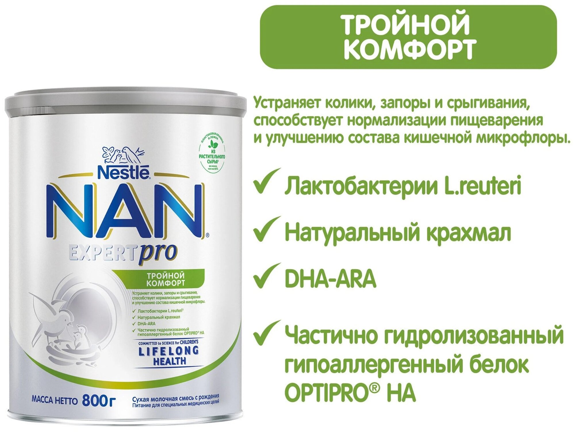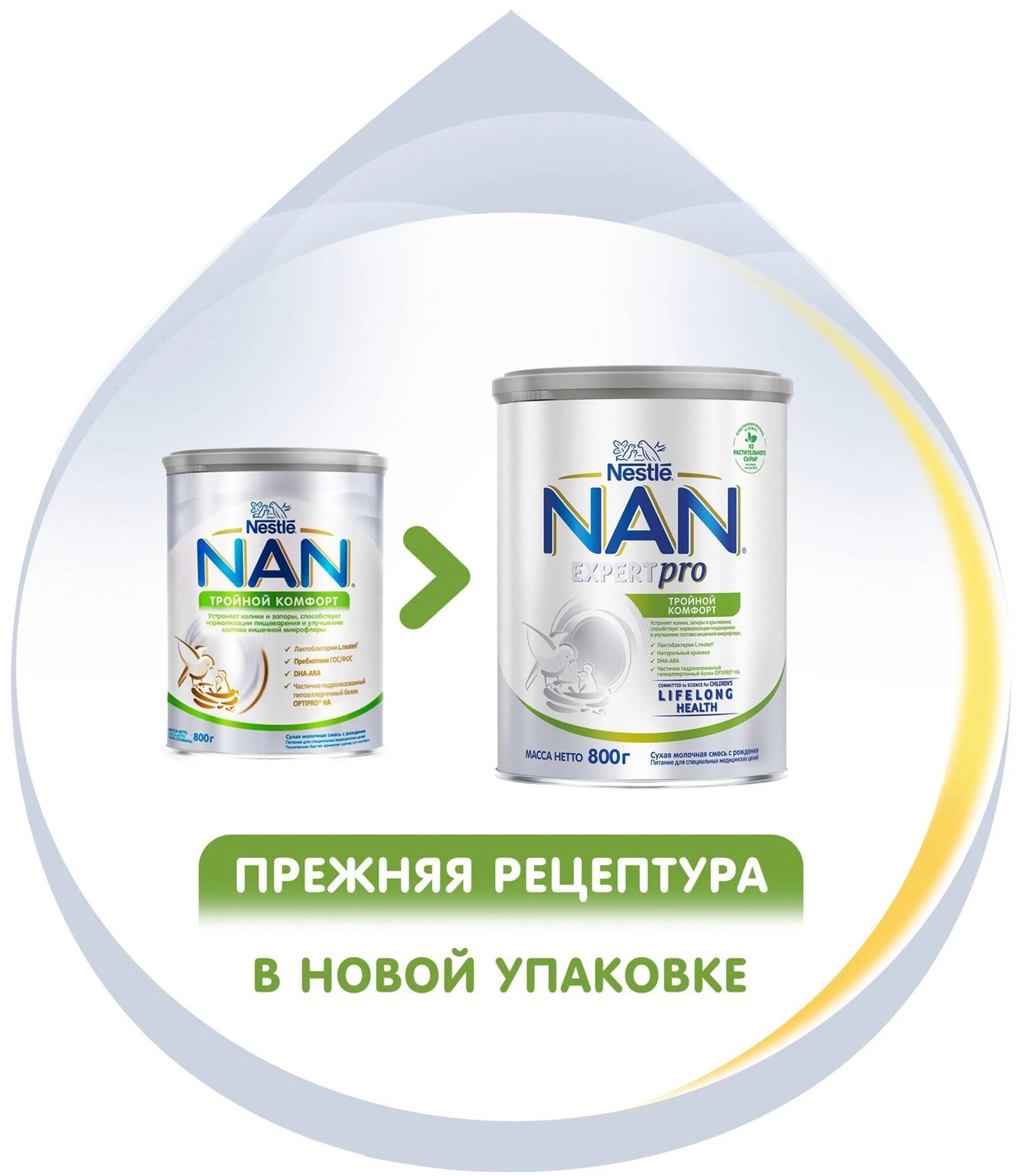 "Nan Тройной комфорт Сухая смесь для детей с рождения" 800 г, 2шт интересное: