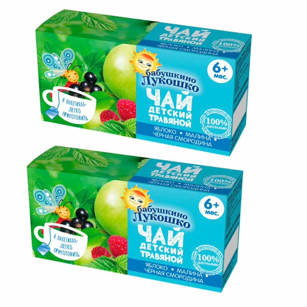 Купить Чай детский Бабушкино Лукошко травяной Яблоко Малина Черная смородина с 6 мес. 20 пак, 2 уп.