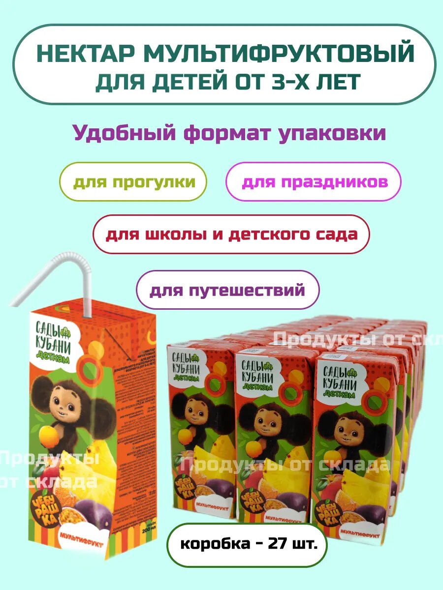 Сок детский Мультифруктовый Чебурашка, 200 мл, 27 штук интересное: