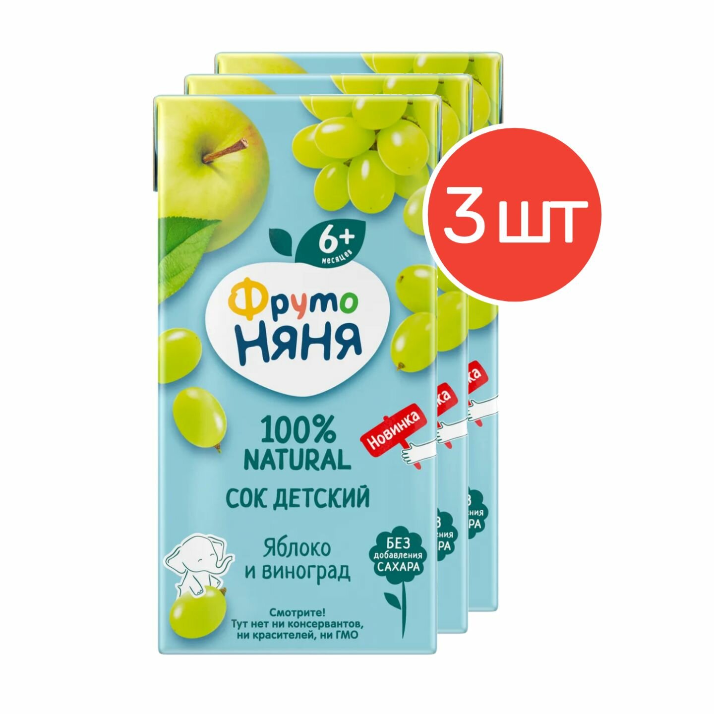 Купить Сок "ФрутоНяня" яблоко, виноград с 6 месяцев, 0,2л 3шт
