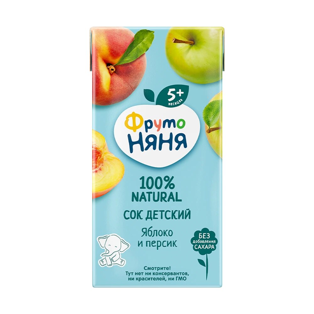 Сок ФрутоНяня из яблок и персиков с 5 месяцев 0,2 л 10 шт