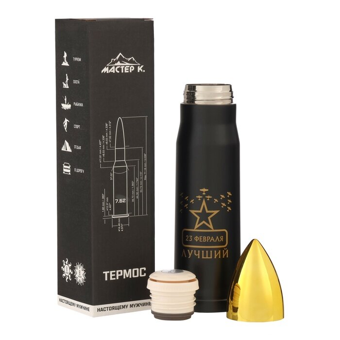 Термоc, 450 мл, Пуля "Мастер К. 23 февраля", сохраняет тепло 8 ч, 28 х 7 см интересное: