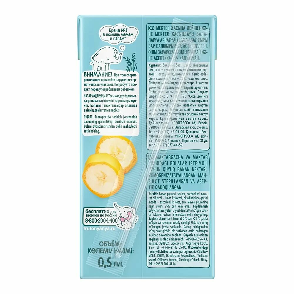 Нектар ФрутоНяня банановый с мякотью 0,5л 4шт интересное:
