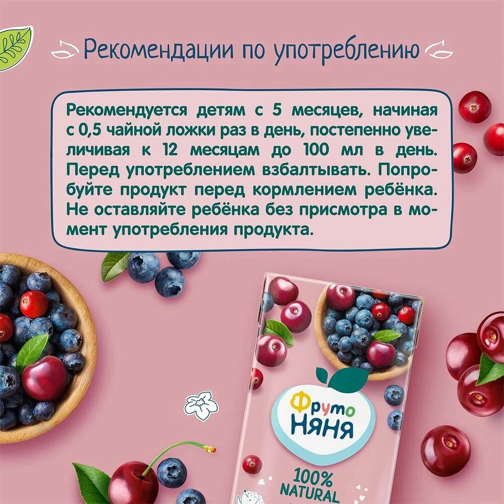 Морс ФрутоНяня из клюквы, черники и вишни от 3 лет 0,5 л 6 шт интересное: