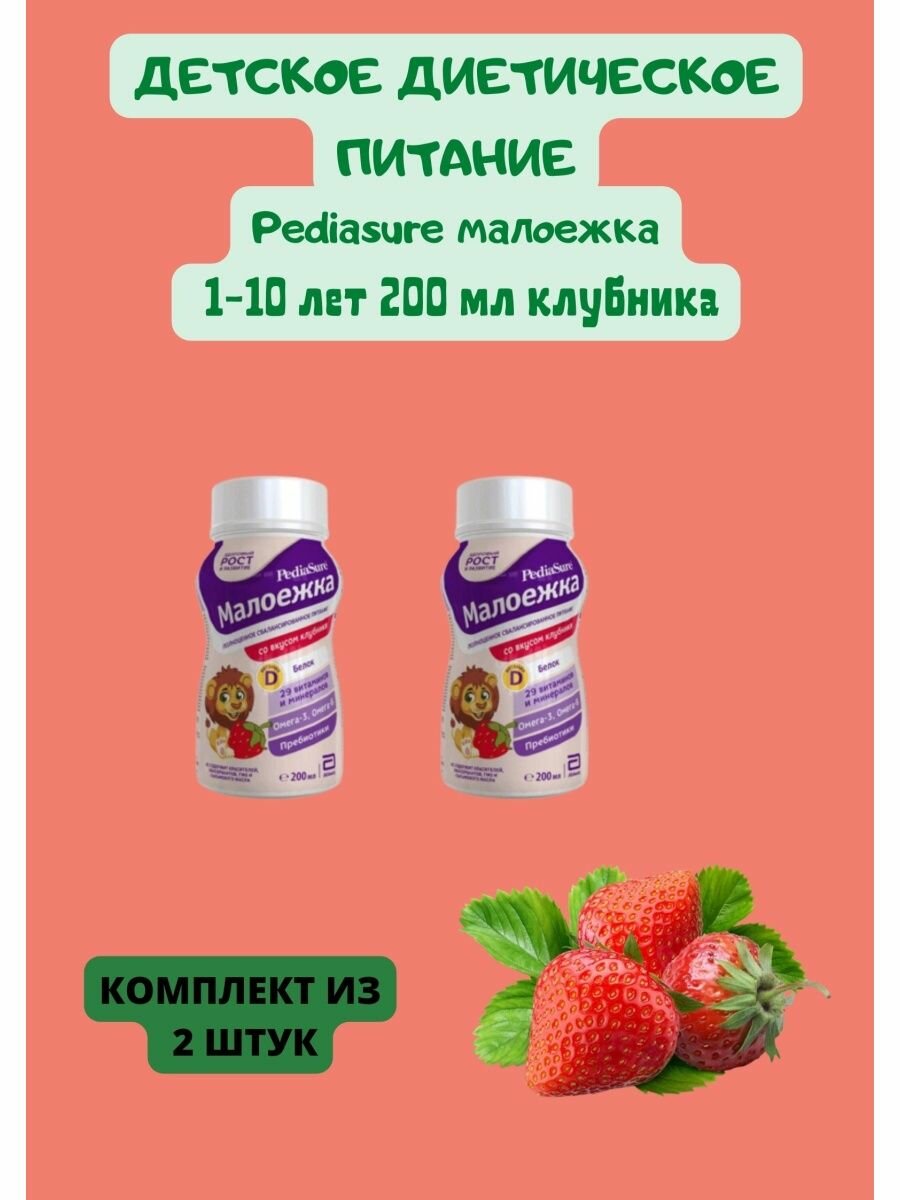 Купить Детское питание Pediasure Малоежка, вкус клубника, для детей с 12 месяцев 2уп