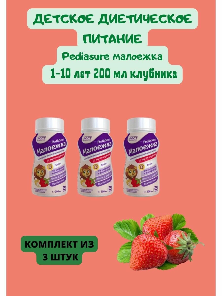 Купить Детское питание Pediasure Малоежка, вкус клубника, для детей с 12 месяцев 3уп