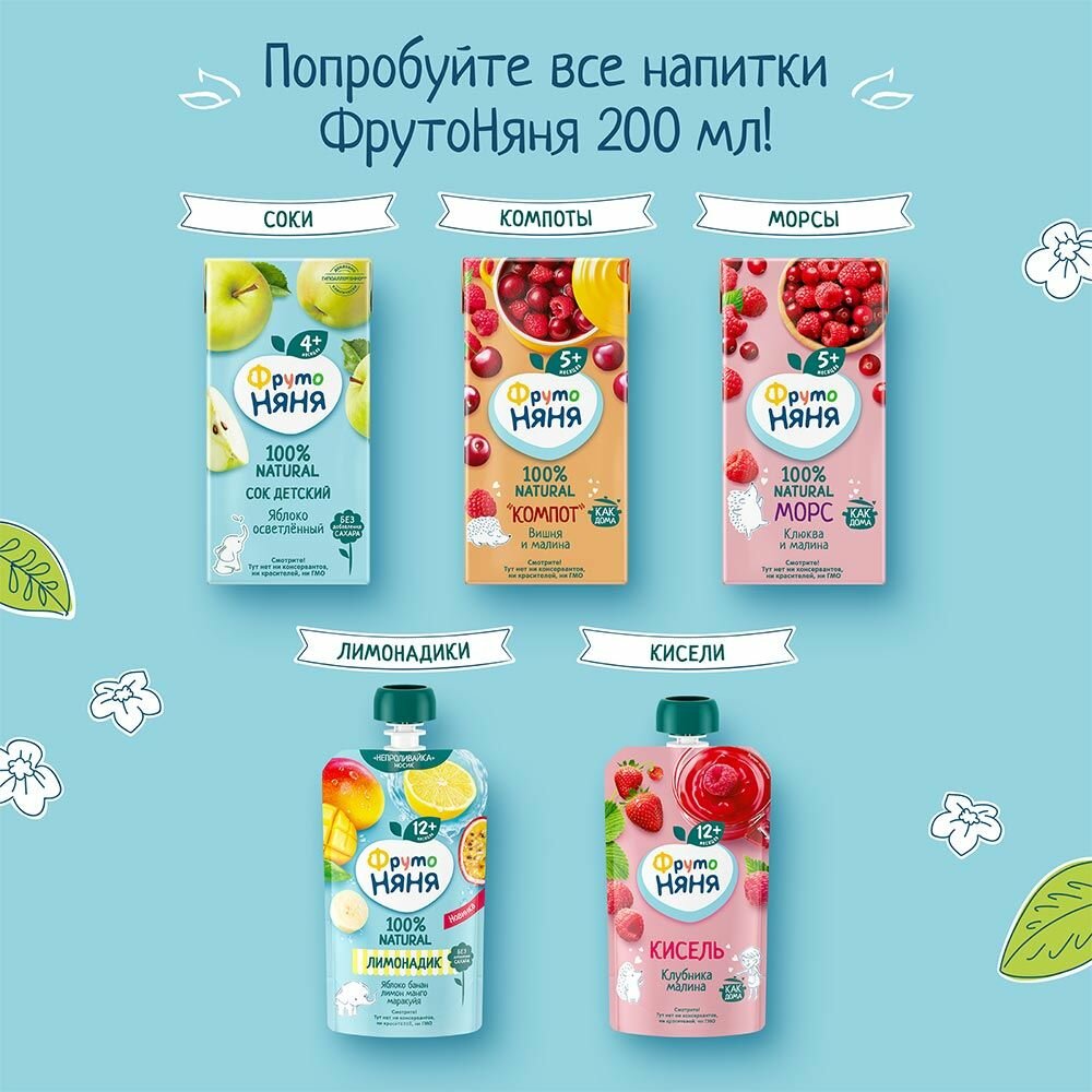 Морс из клюквы и малины ФрутоНяня 0,2л 5 шт интересное: