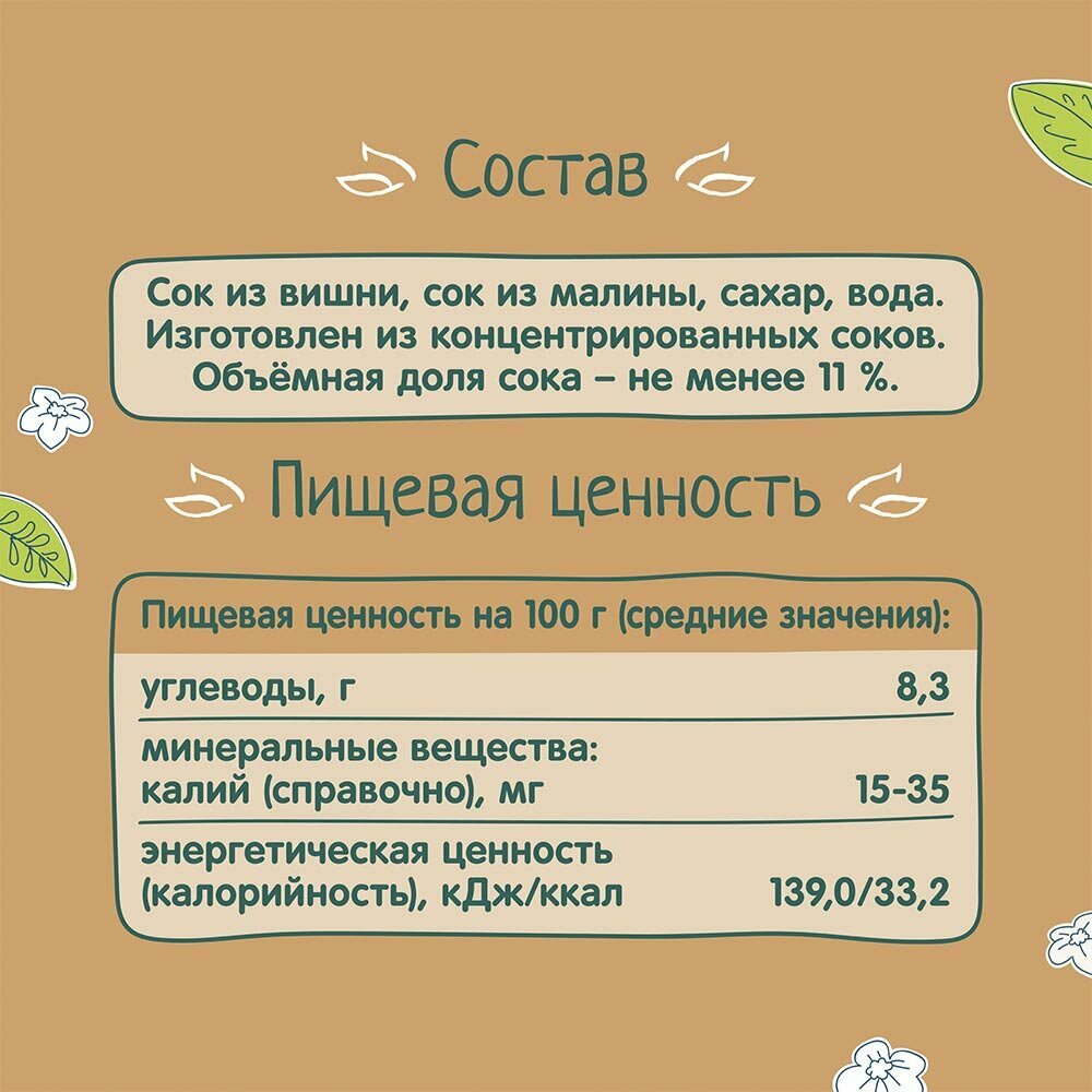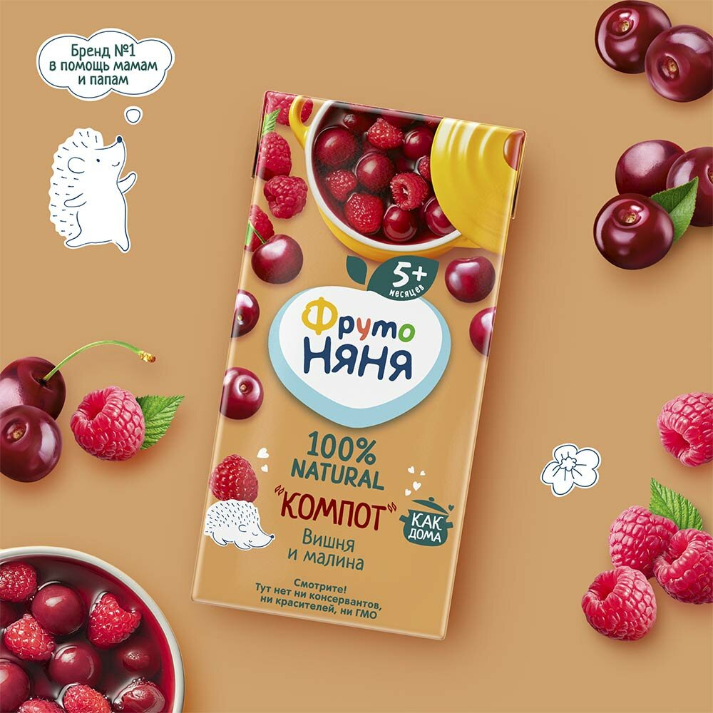 Компот ФрутоНяня из вишни и малины с 5 месяцев 0,2 л 5 шт интересное: