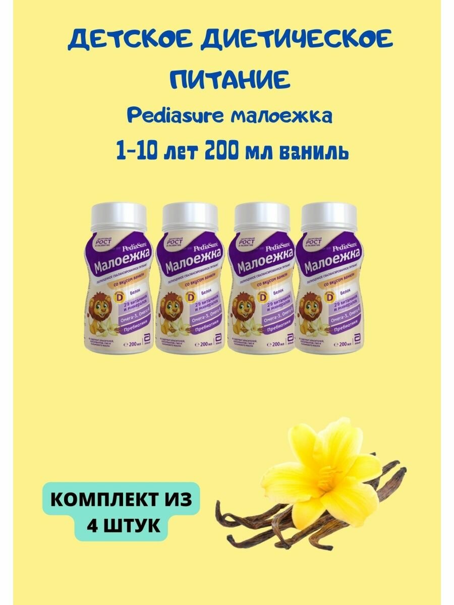 Купить Детское питание Pediasure Малоежка, ваниль, 200мл, с 12 месяцев 4уп