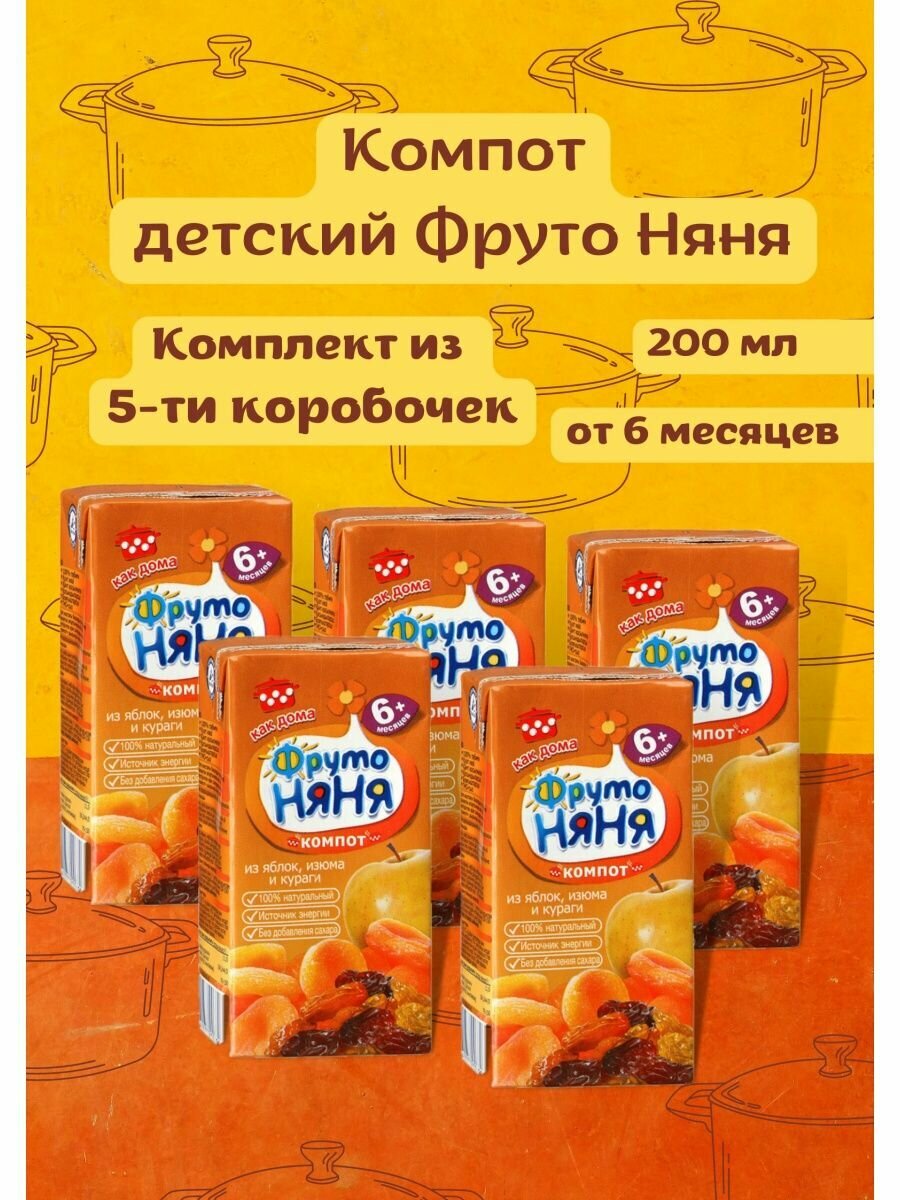Компот детский Фрутоняня из яюлок, изюма и кураги, с 6 месяцев, 5шт интересное: