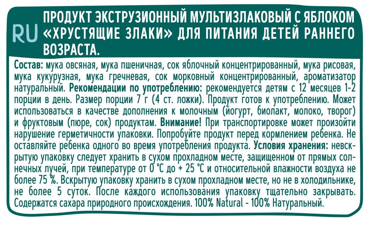 ФрутоНяня паффс «Хрустящие Злаки» с Яблоком Экструзионный Мультизлаковый Продукт {с 12 мес} 21г.