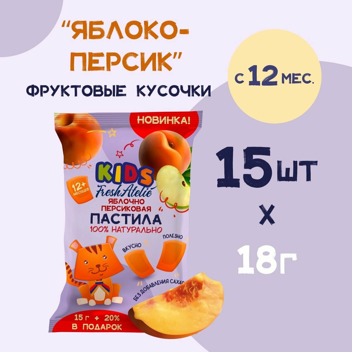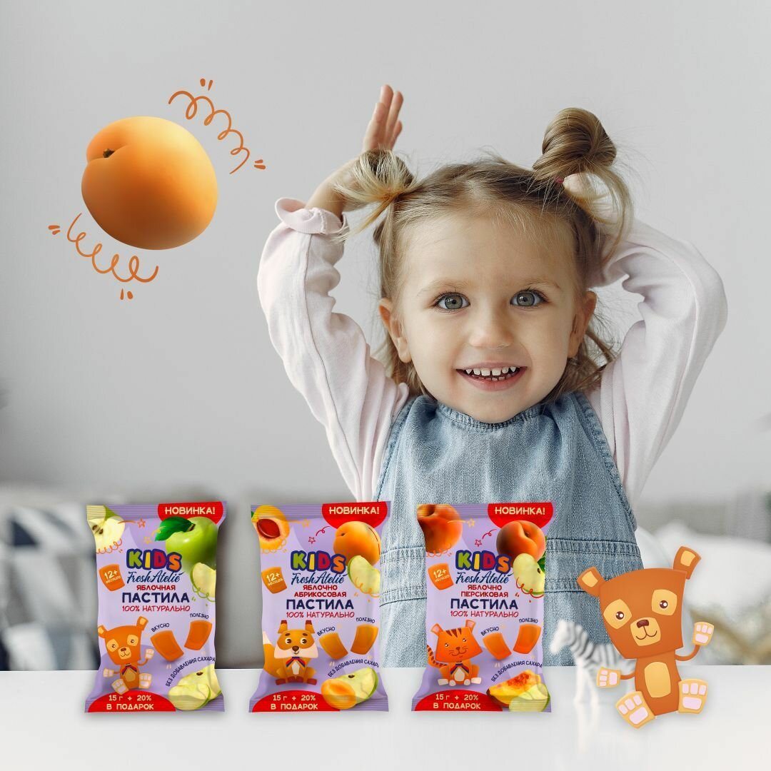 Фруктовые кусочки Fresh Atelie KIDS для детей с 1 года, пастила Яблоко-персик, шоубокс 18 г x 15 шт, фруктовый мармелад без сахара интересное: