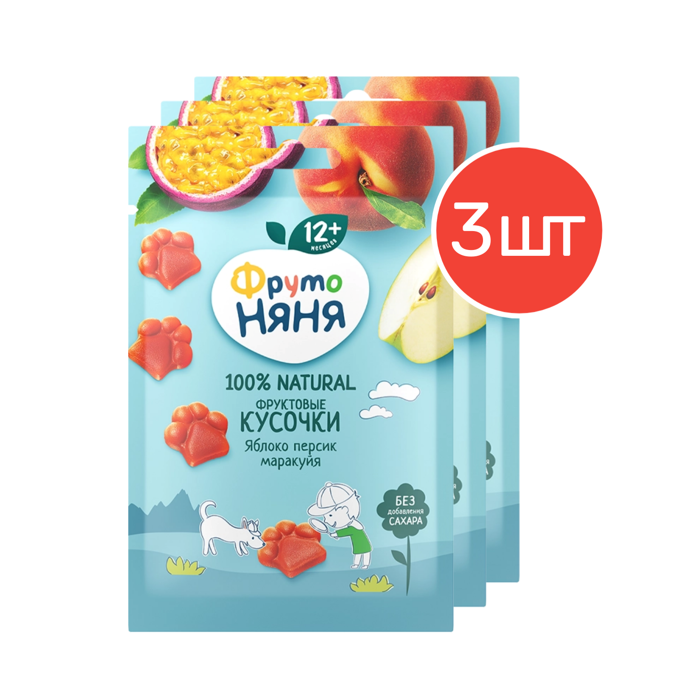 Купить Фруктовые кусочки "ФрутоНяня" из яблок, персиков и маракуйи с 12 месяцев 15 г 3 шт