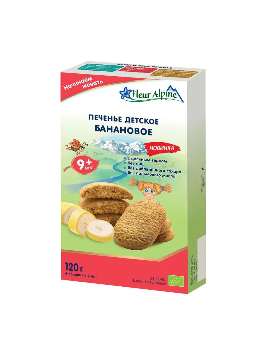 Печенье детское Fleur Alpine Банановое с 9 месяцев, 120 г интересное: