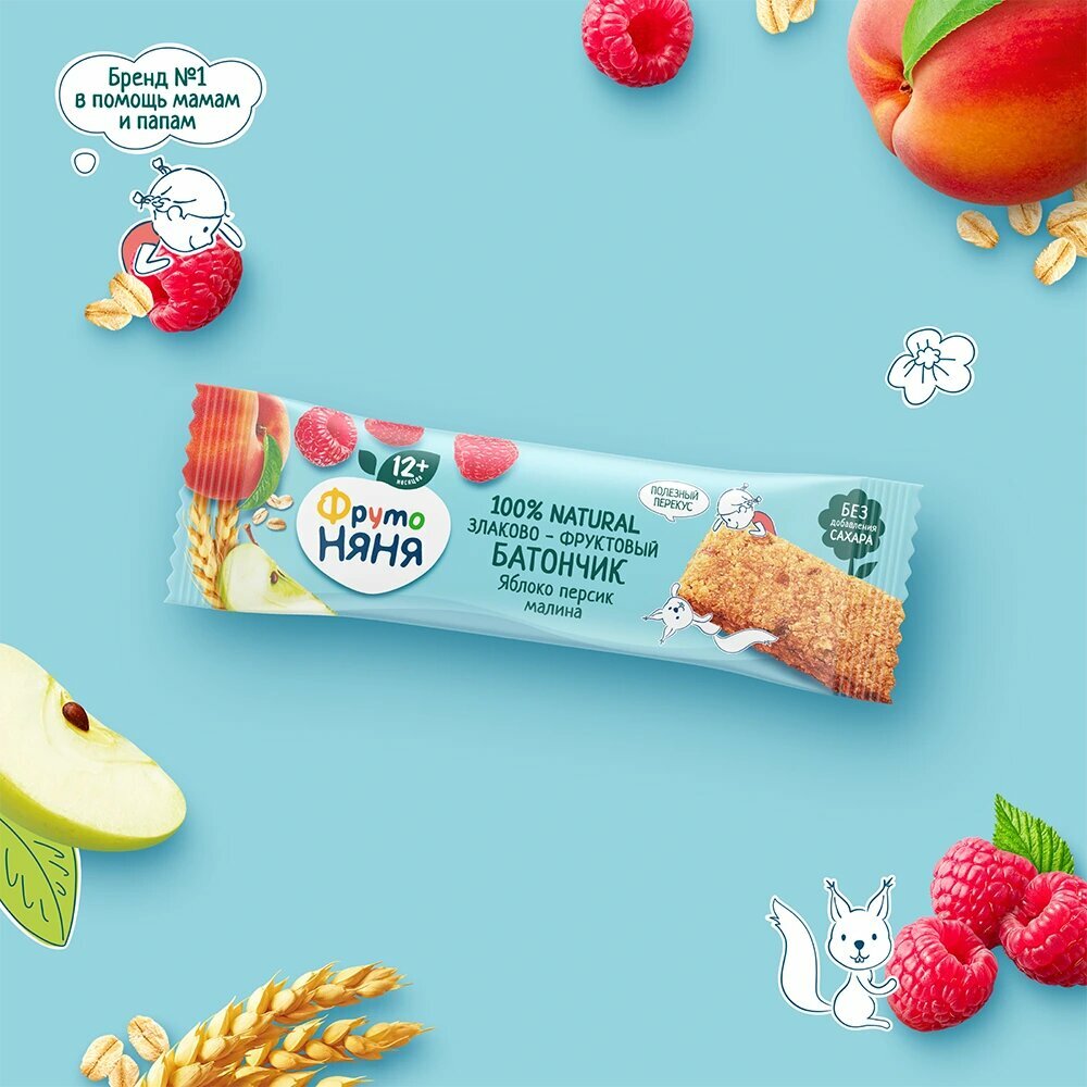 Злаково-фруктовый батончик "ФрутоНяня" Яблоко-Персик-Малина с 12 месяцев 25 г 15 шт интересное: