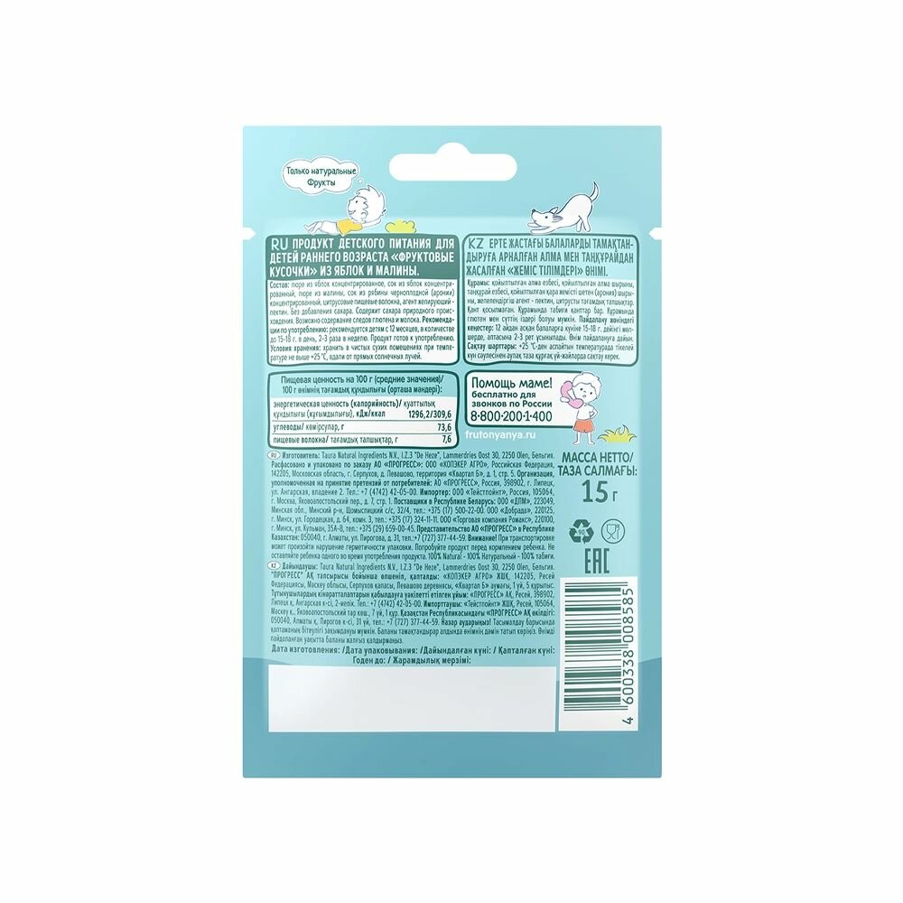 Фруктовые кусочки ФрутоНяня из яблок и малины с 12 месяцев 15 г 5 шт интересное: