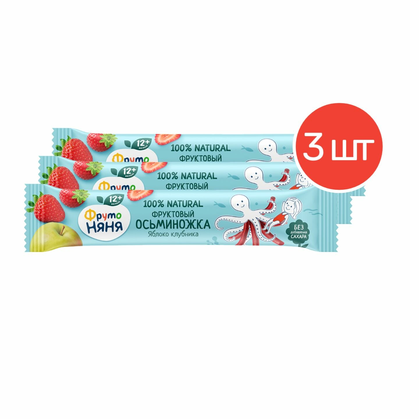 "ФрутоНяня" фруктовые кусочки "Осьминожка" из яблок и клубники 16г 3шт интересное: