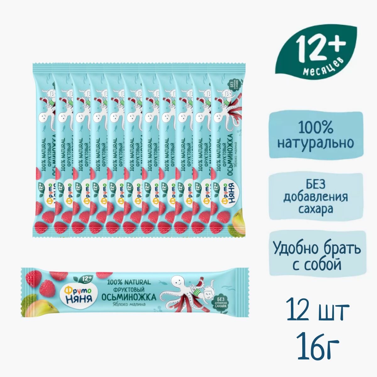 "ФрутоНяня" фруктовые кусочки "Осьминожка" из яблок и малины 16г 12шт интересное:
