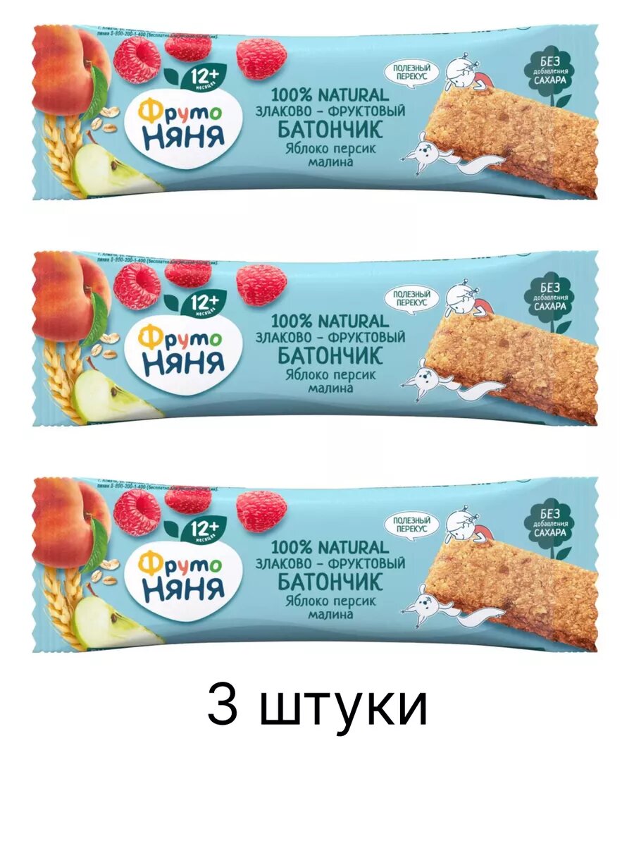 Батончик яблоко-персик-малина-злаки 25г с12месяцев (3шт.) интересное: