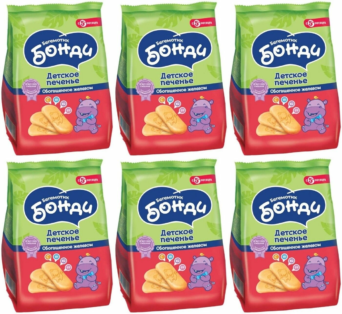 Купить Бегемотик Бонди Детское печенье, обогащённое железом, с 5 месяцев 180 гр, 6 уп