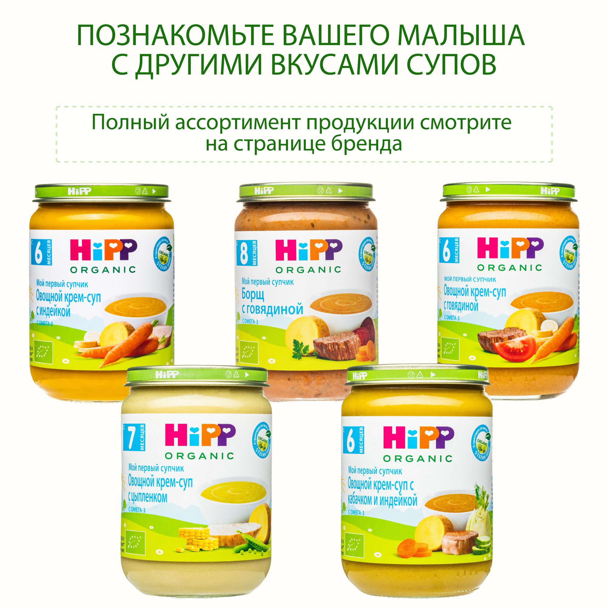 Пюре детское HiPP "Овощной крем-суп с нежной телятиной", с 6 месяцев, 1шт х 190г интересное: