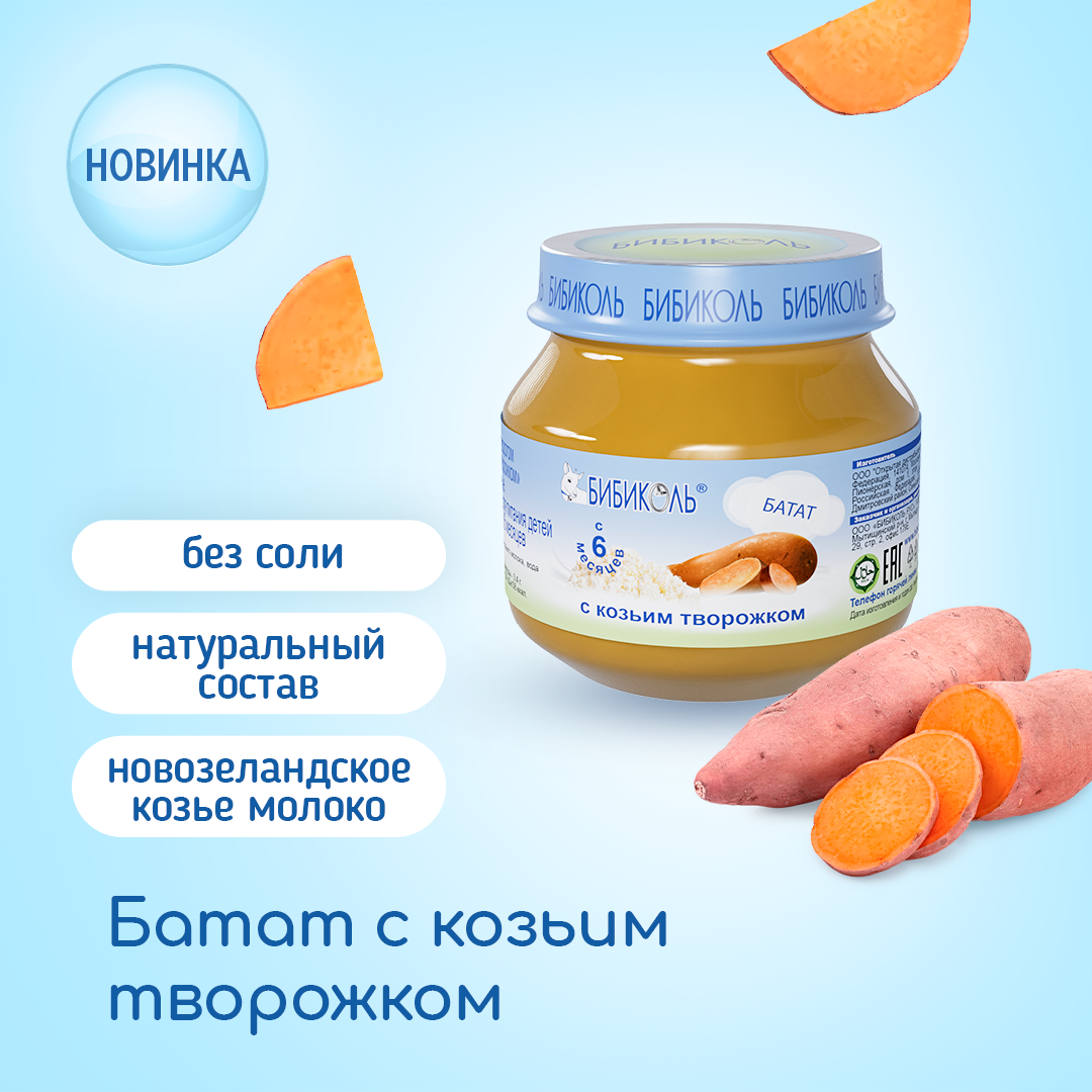 Пюре бибиколь овощное «Батат с козьим творожком» для детей с 6 месяцев 6 * 80гр интересное: