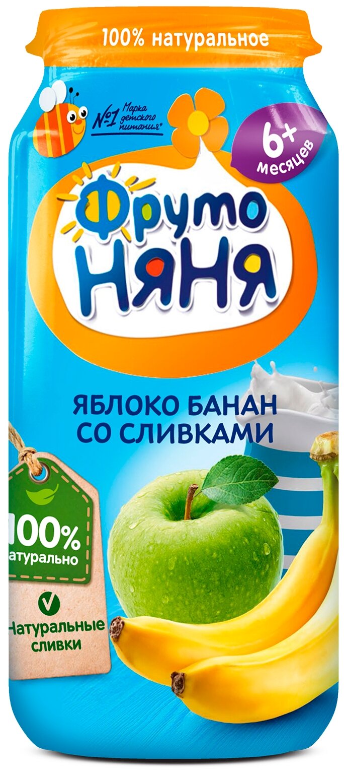 Купить ФрутоНяня Из яблок и бананов со сливками, с 6 месяцев, 250 г, 12 шт.