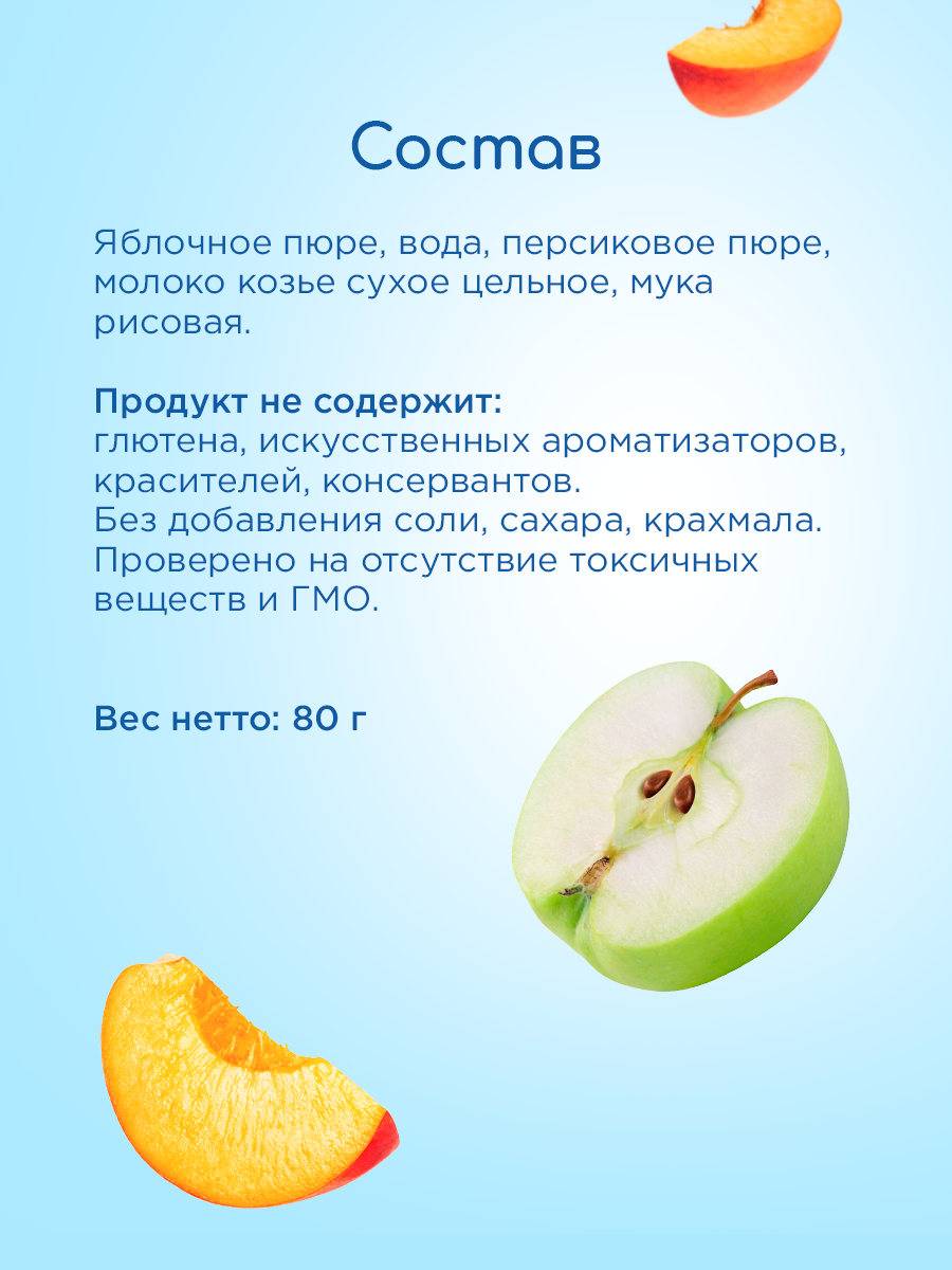 Фруктово-молочное пюре «Яблоко и персик с козьим молочком» 6*80гр. интересное: