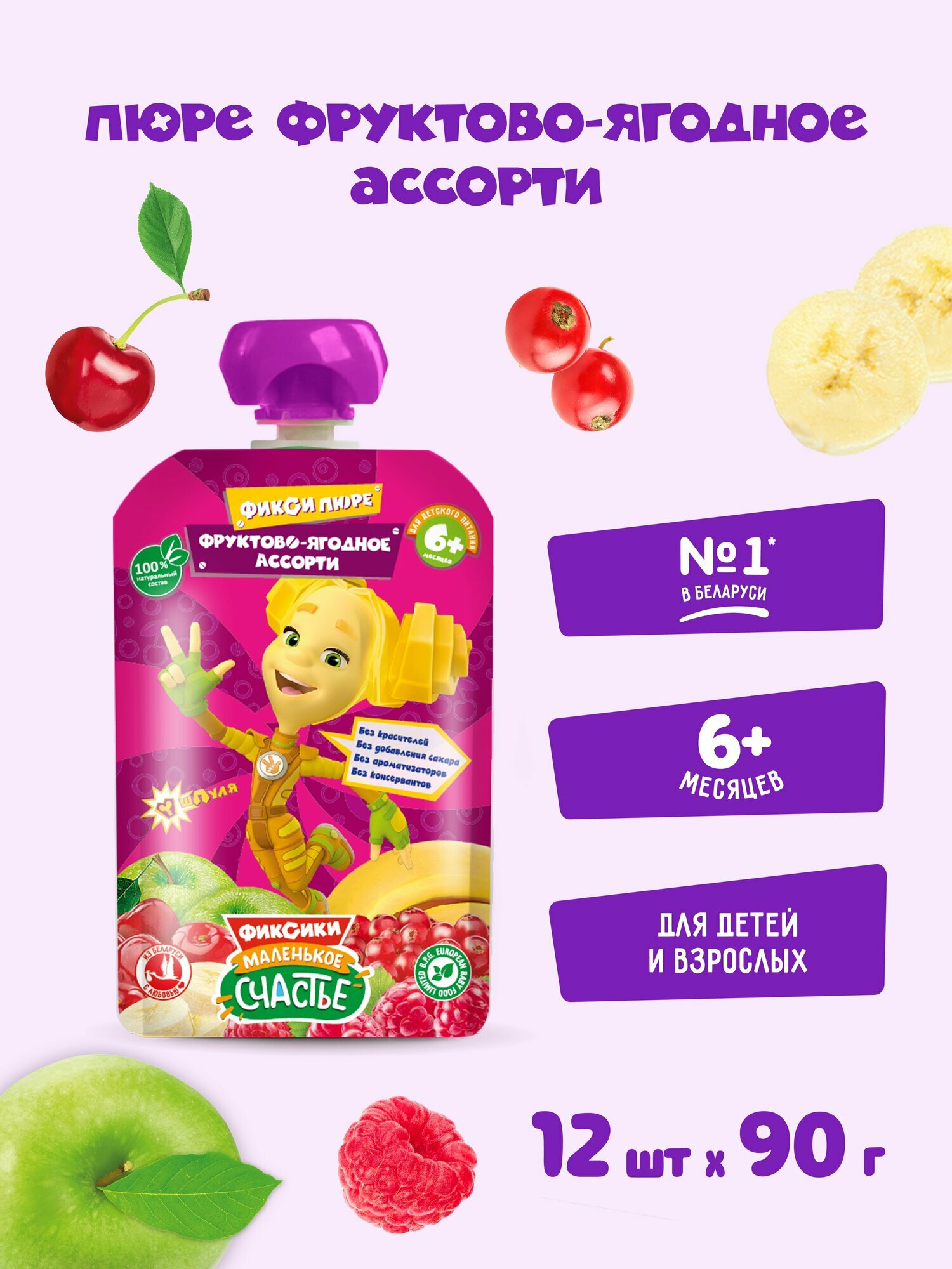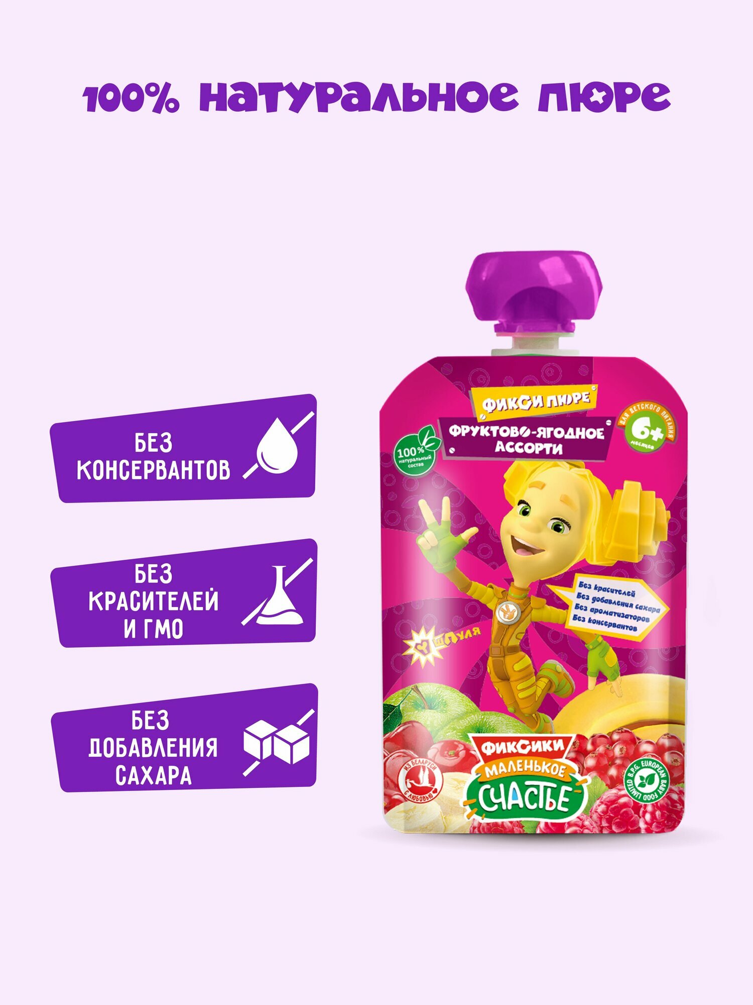 Купить Пюре фруктовое Фиксики Фруктово-ягодное ассорти с 6 месяцев без сахара 12 шт