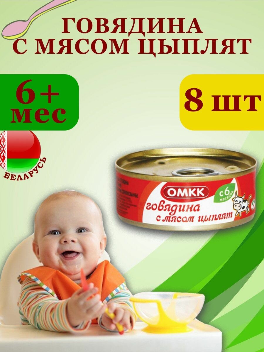 Купить Пюре детское мясное омкк Говядина с мясом цыплят 100гр х 8 шт