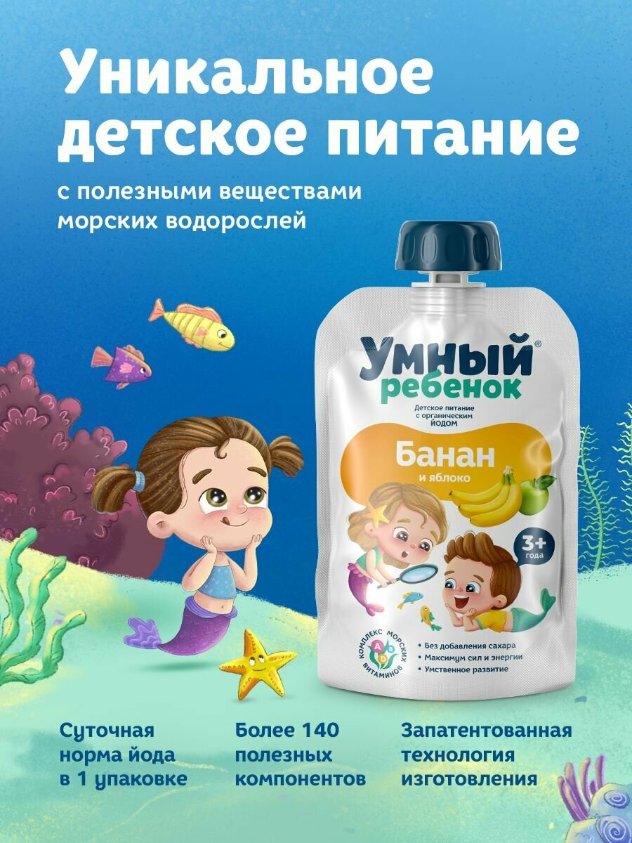 Пюре детское Умный ребенок Банан-Яблоко, 90г (15 шт) интересное: