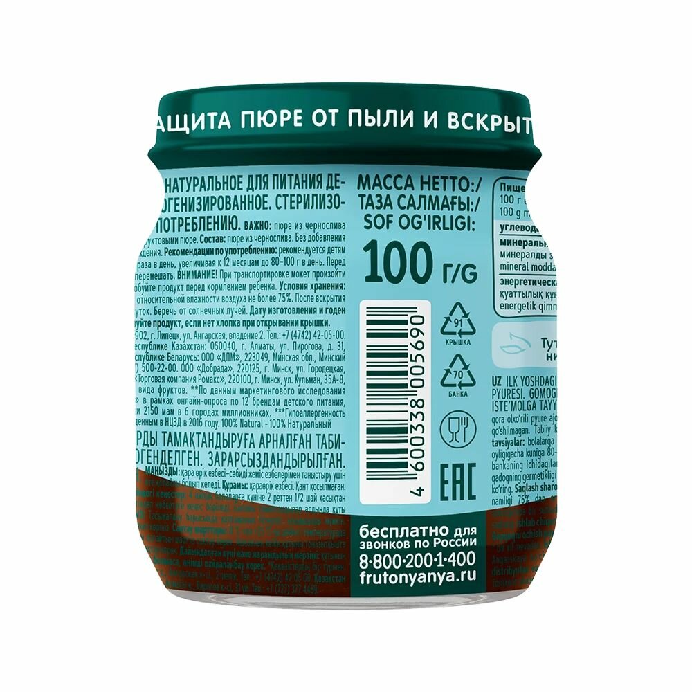 Ниже Вы можете прочитать отзывы на Пюре из чернослива ФрутоНяня 100г 3 шт, ознакомится с подробными характеристиками, посмотреть интересные обзоры и фотографии на Пюре из чернослива ФрутоНяня 100г 3 шт.