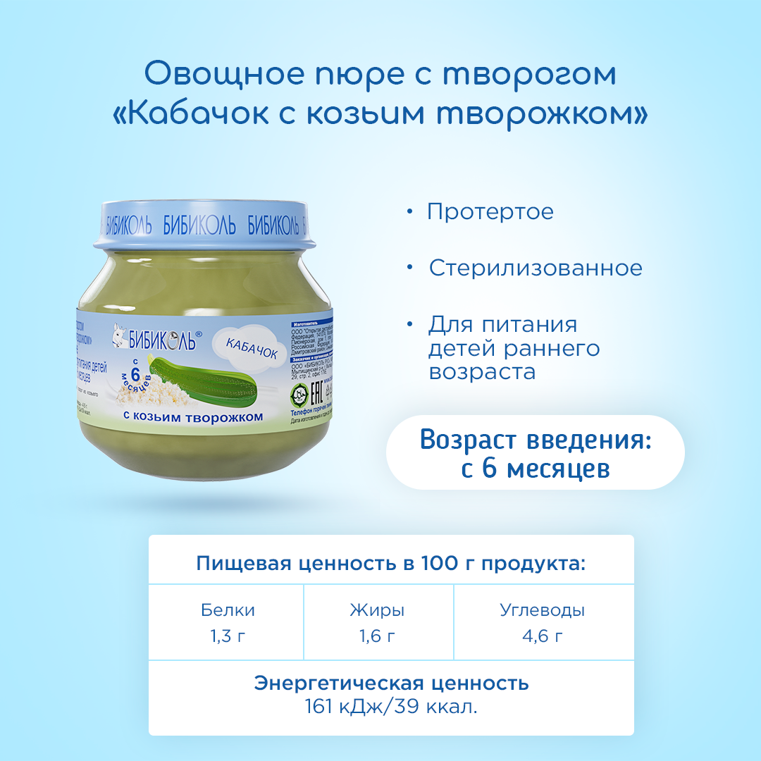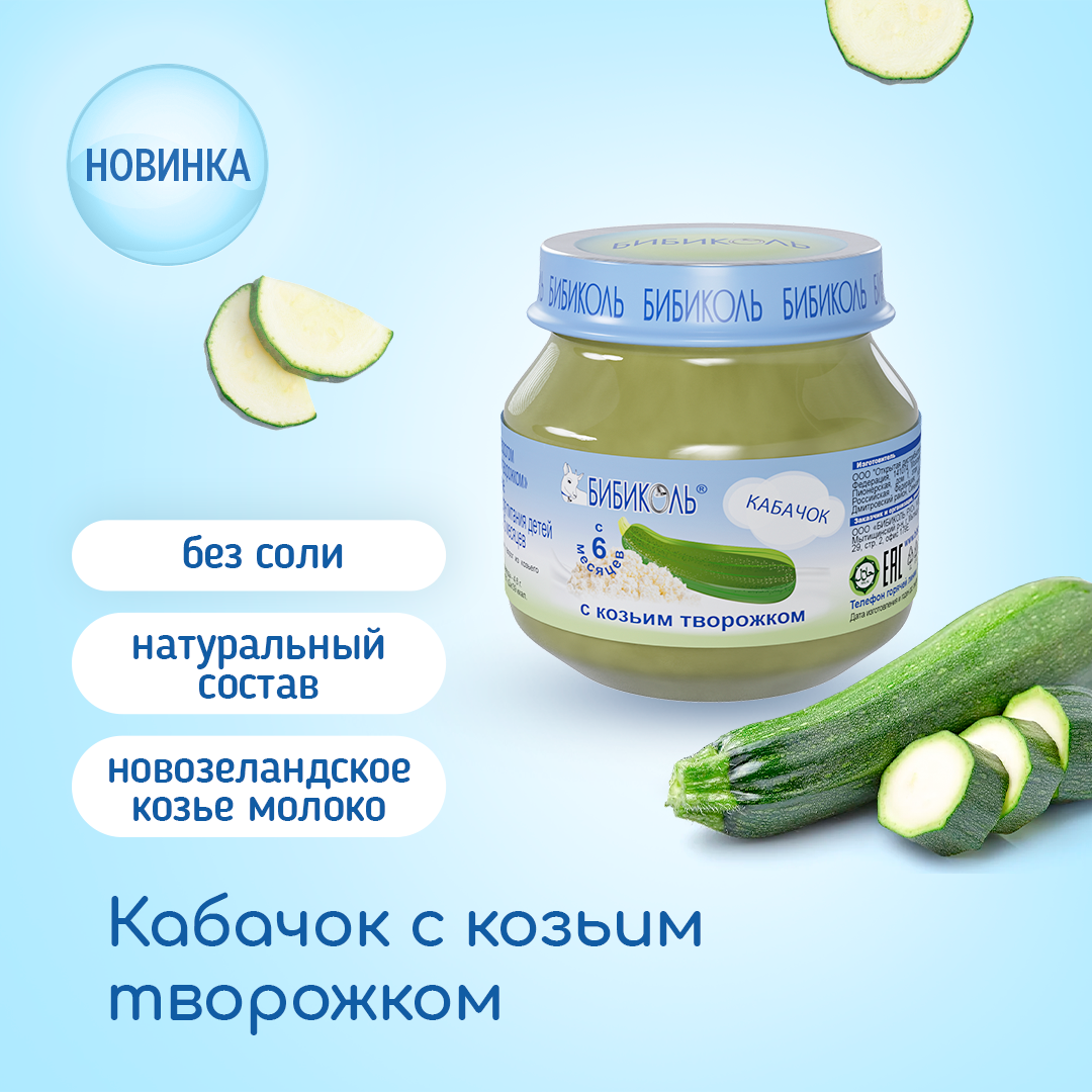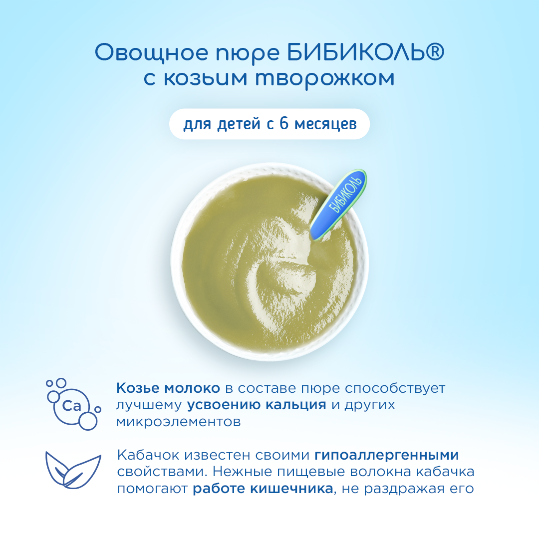 Пюре бибиколь овощное «Кабачок с козьим творожком» для детей с 6 месяцев 6*80гр интересное: